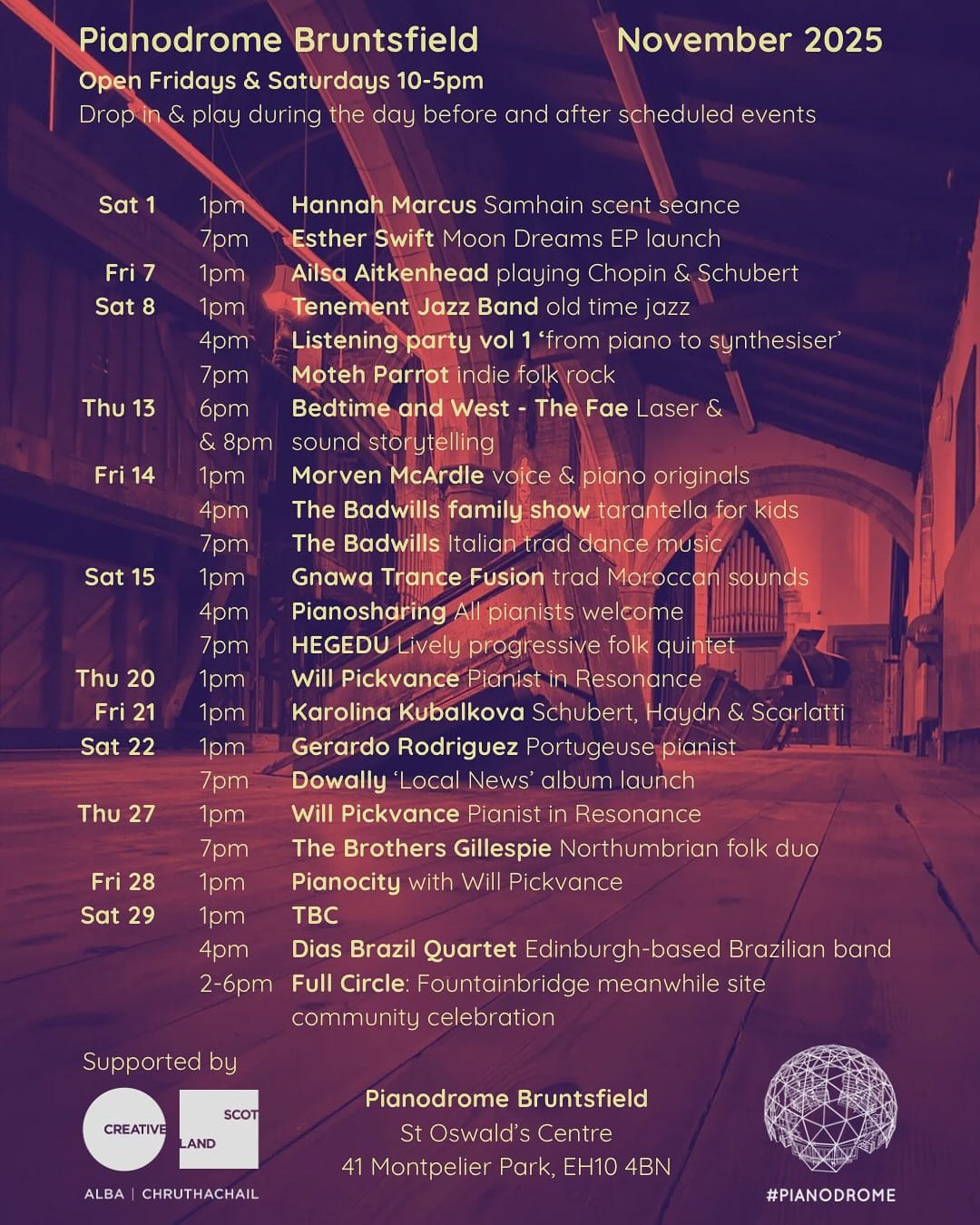 🎹 Having opened just weeks ago, there's an impressively full line-up of gigs at Bruntsfield's new venue for the Pianodrome project. - See the listings here.