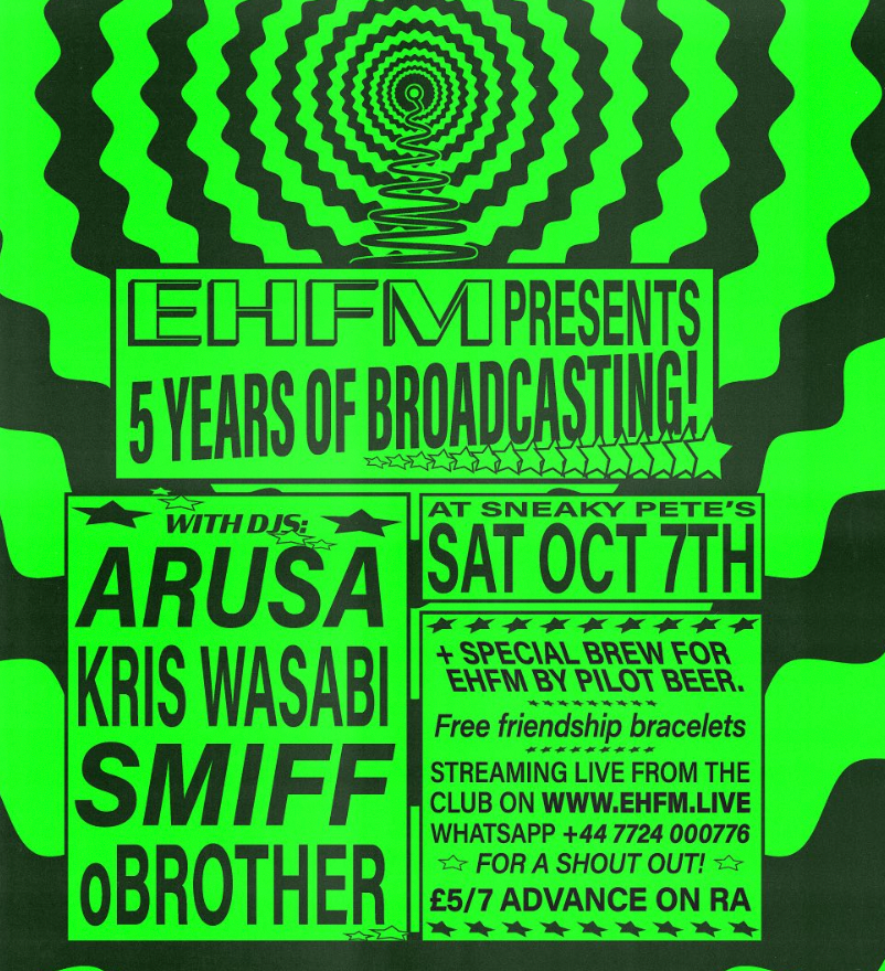 🥳 There’s a banging line-up of DJs planned as EHFM celebrates five years of broadcasting next month with a special night of music at Sneaky Pete’s. It will be broadcast live on air from the booth. - The full line-up, and details of how to get a shout-out on air / in the club, are on Instagram and tickets are on RA.