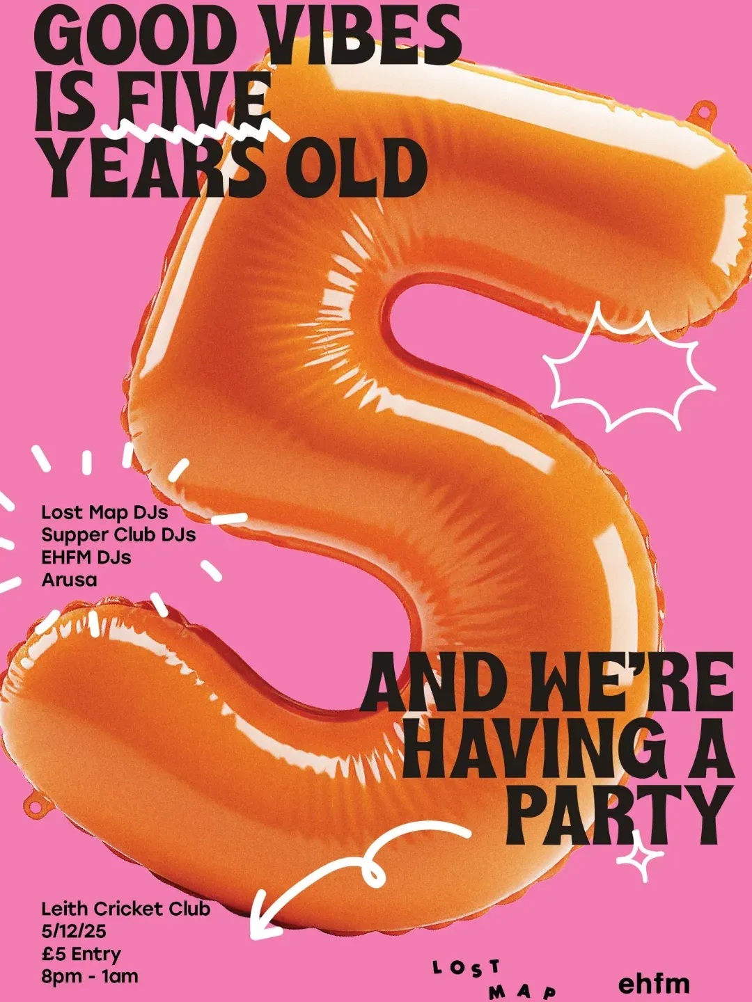 🎉 Celebrating five years in business, Leith's Good Vibes record shop is throwing a party. It's at Leith Cricket Club on Friday 5 December. Spinning the tunes: Lost Map DJs, Supper Club DJs, EHFM DJs, Arusa + a Special Guest TBC... - Tickets are here.