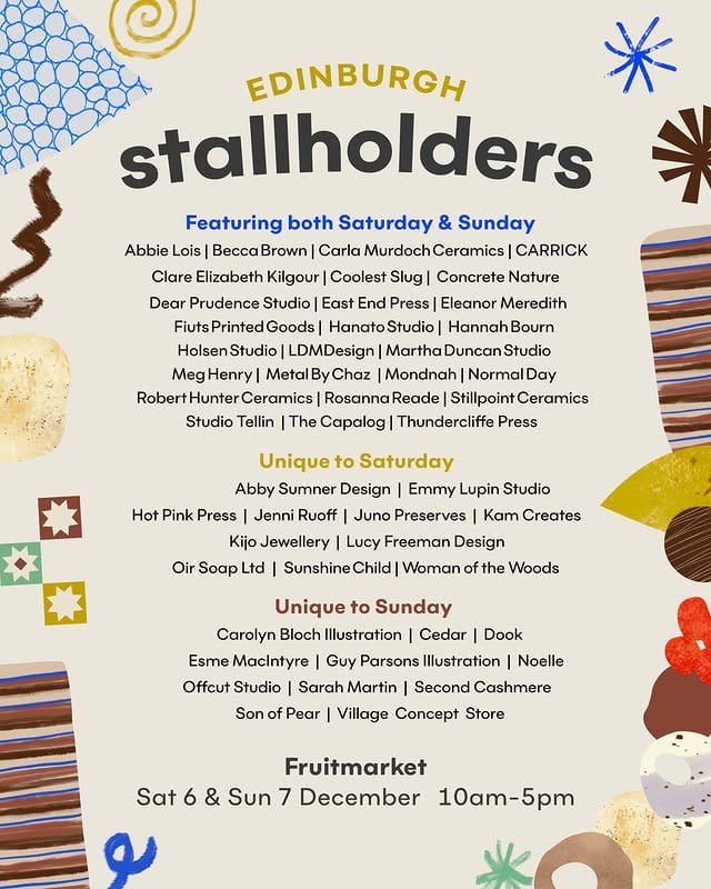 π¨ On Saturday and Sunday: Fruitmarket is hosting 30+ independent creatives for the Winter Makers Market. - A full list of the traders is in the caption here.