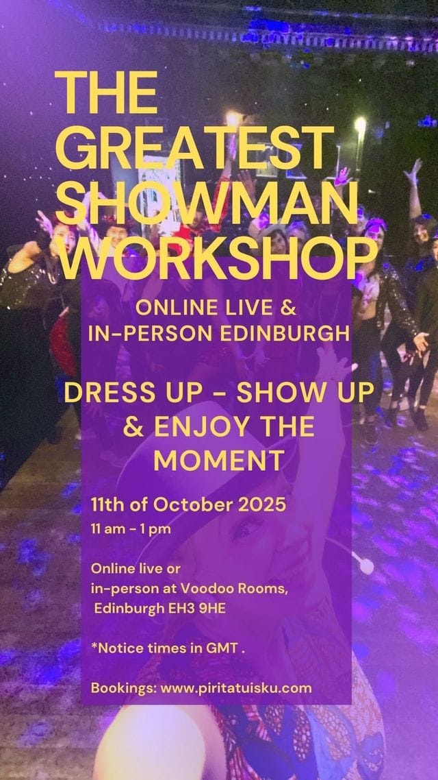 📌 “Sat 11 Oct - Ready to let your inner star shine? Join us for a magical dance experience inspired by The Greatest Showman – no experience needed, just bring your energy and a touch of circus flair at Voodoo Rooms, Edinburgh. Dress up & step into the spotlight!” - Thanks to Dance Teacher Pirita Tuisku for sharing this.