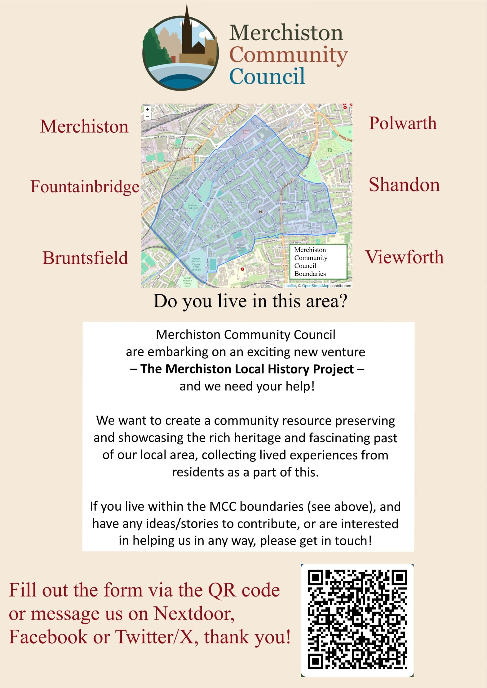 📌 “Local history project - share your stories! Do you live in Merchiston, Fountainbridge, Bruntsfield, Polwarth, Shandon or Viewforth? The Merchiston Community Council is compiling a local history project. Please share stories about life in these neighbourhoods, past and present. To submit your story, please use the form at the link here or email merchistoncc@gmail.com.”