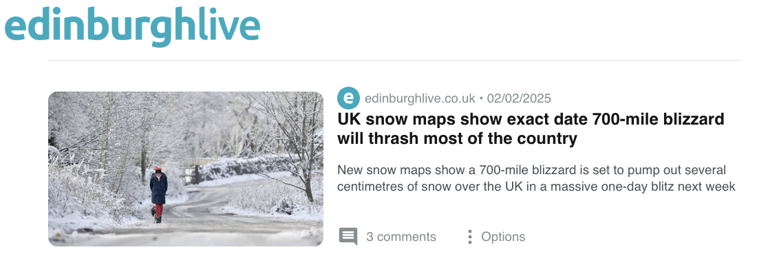 ⮑ Of course, Edinburgh Live went further, warning a ‘700-mile blizzard will thrash most of the country’.