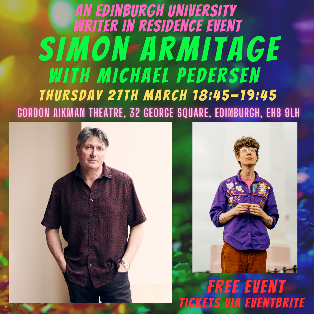 📝 Two of the UK’s top poets are getting together for a free event next month. Simon Armitage (UK Poet Laureate, former Oxford Professor of Poetry, Queen's Gold Medal for Poetry winner and Ivor Novello-winning songwriter) will be in-conversation with Edinburgh Makar and university Writer in Residence Michael Pedersen on 27 March. - Tickets are free at this link.