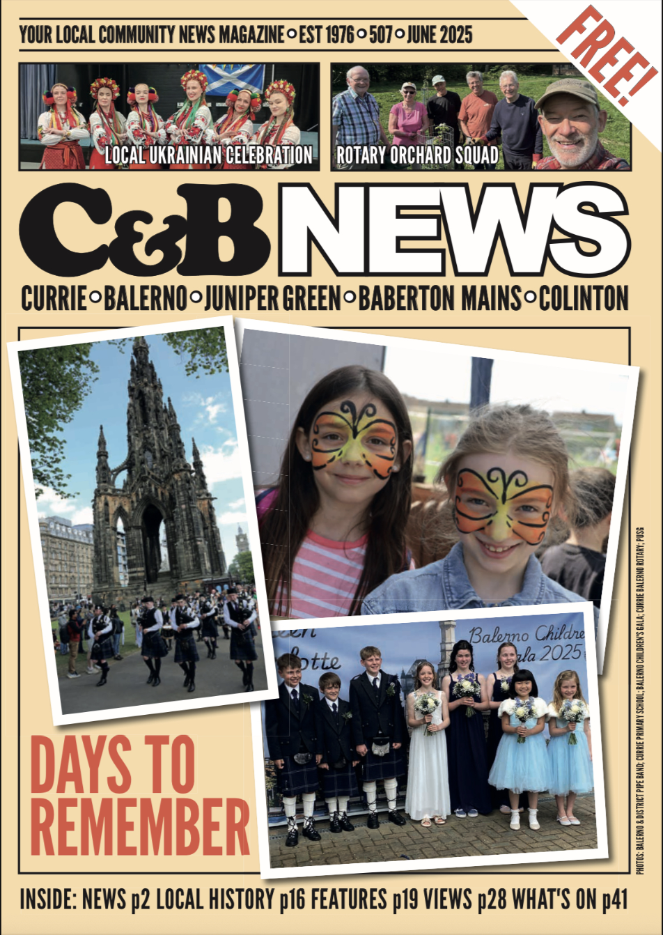📌 “A bumper June issue of “C&B News” is now available online and in print from this Saturday—see our website for list of outlets in south-west Edinburgh. This month we celebrating summery “Days to Remember”, interview Police Scotland’s Local Area Commander for South West Edinburgh, and include the latest updates from residents, local groups and political representatives across the upper Water of Leith valley.” - Thanks to C&B News for sharing this.