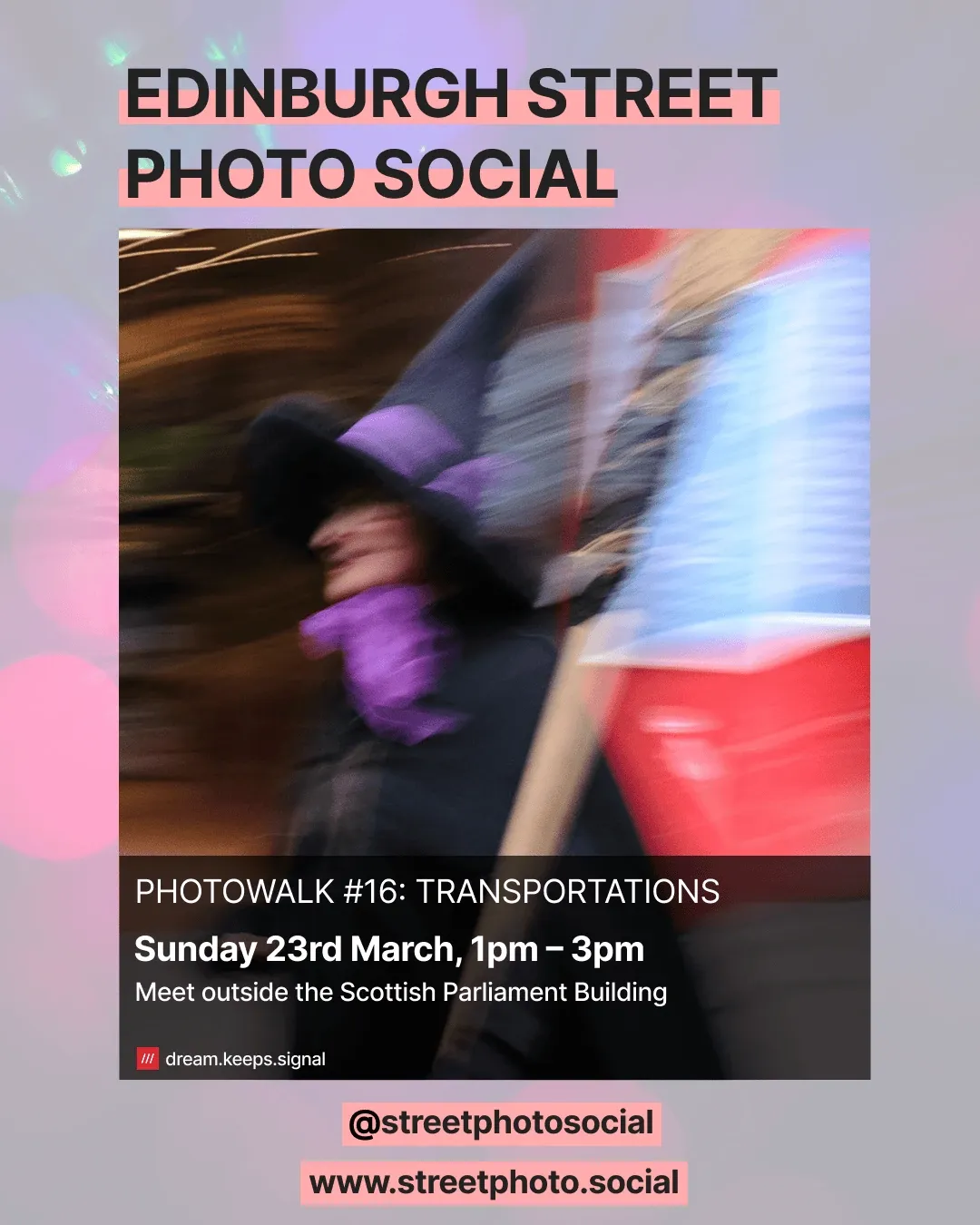 📌 “Street Photo Social is a monthly free and friendly photo walk for street photographers and friends. We’ll spend a couple of hours wandering around Edinburgh, shooting stills and shooting the breeze.” - Thanks to Olly for sharing this. It’s on Sunday from 1pm starting outside the Scottish Parliament Building.
