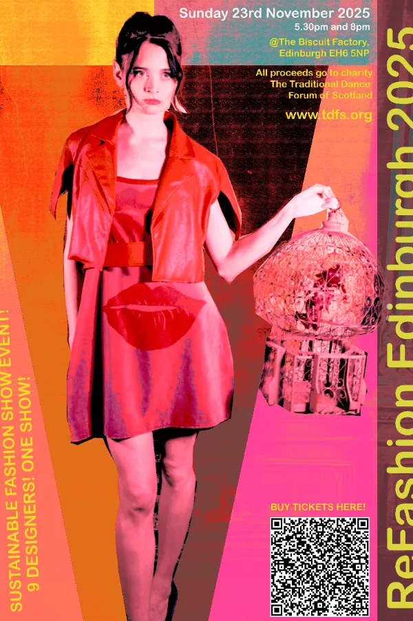 📌 "🌍 Sunday 23rd Nov, 8pm ♻️ Join us for ReFashion Edinburgh – a maverick sustainable fashion show that shines a spotlight on Edinburgh-based designers who share a passion for sustainability and ethical creation, all proceeds going to The Traditional Dance Forum of Scotland. Last remaining tickets!" - Thanks to the ReFashion Organisers for sharing this.
