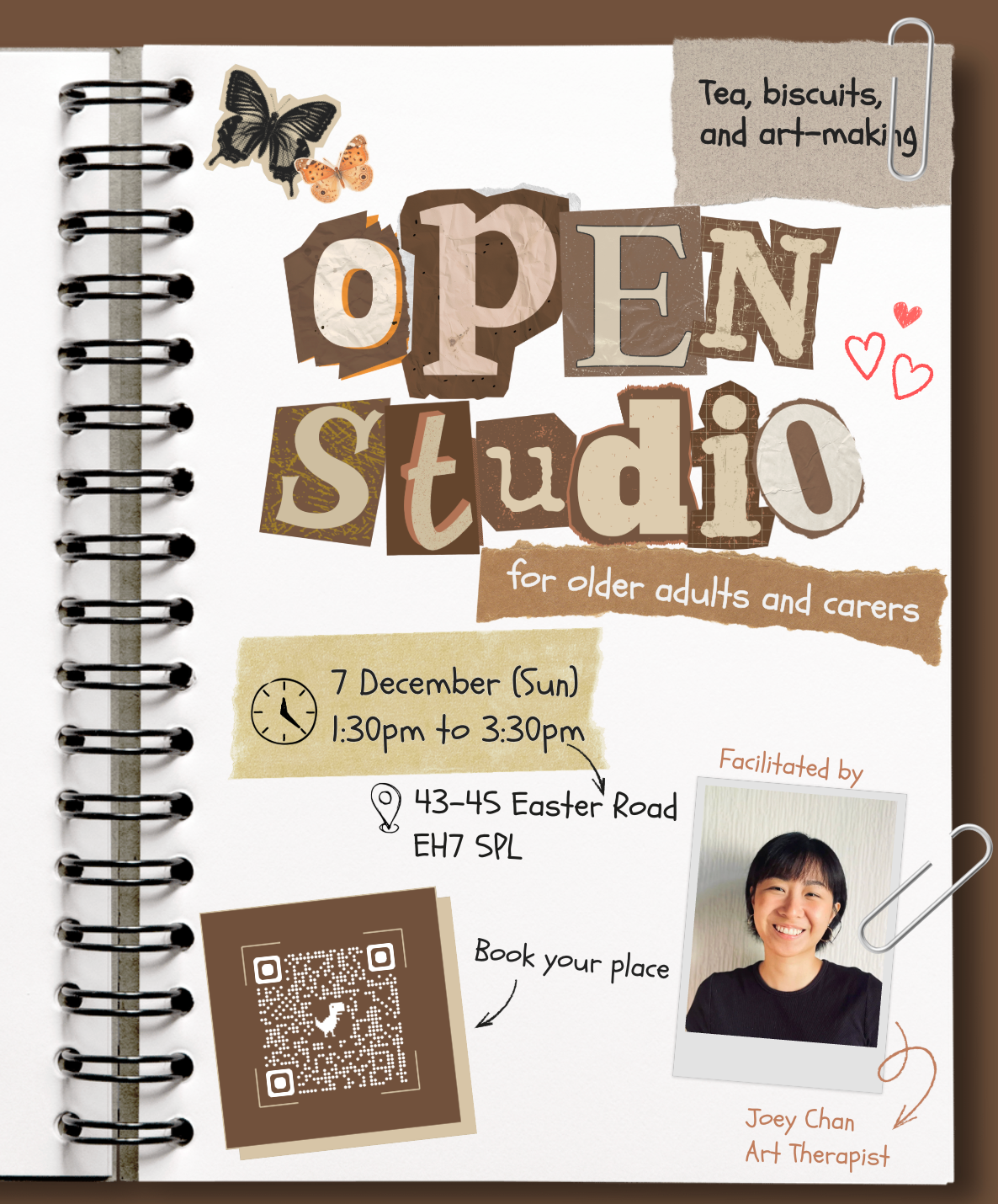 📌 "Saturday 7 December – A cosy Open Studio at CATS for older adults and carers to create, rest, and reconnect. We provide simple art materials, light refreshments, and a welcoming space. Come as you are and make something at your own pace!" - Thanks to Joey Chan, Art Therapist at Creative Arts Therapies Space, for sharing this.