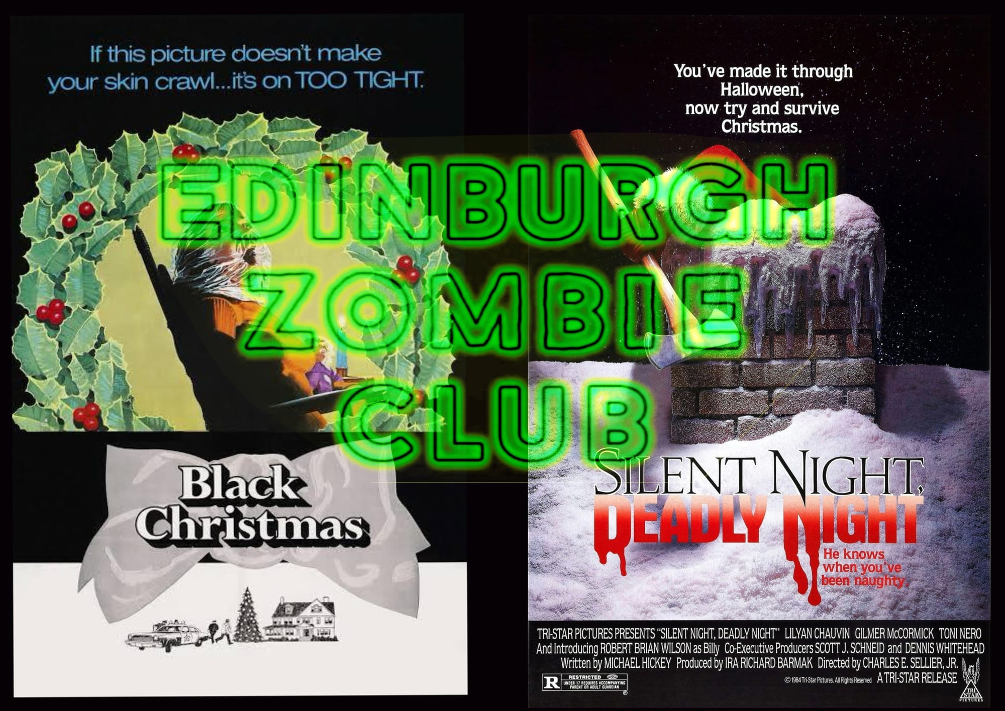 📌 “Wednesday 17th December - Edinburgh Zombie Club, a monthly movie society, has its December screening this week with a 'Christmas Horror Double Bill' of scary seasonal films 'Black Christmas (1974) + Silent Night Deadly Night (1984)'. The Banshee Labyrinth, Niddry Street. Free entry 7pm.” - Thanks to Pat, co-organiser of Edinburgh Zombie Club, for sharing this.