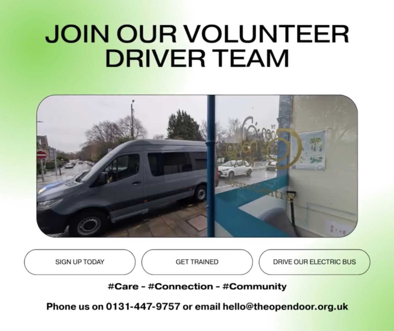 📌 “The Open Door Edinburgh is delighted to have bought an electric minibus via the Plugged in Communities Grant to transport people to and from our Day Services. This is making such a difference to our work and has zero emissions. We need volunteer drivers - please email hello@theopendoor.org.uk” - Thanks to Simon Warr, Operational Manager of The Open Door Edinburgh, for sharing this.