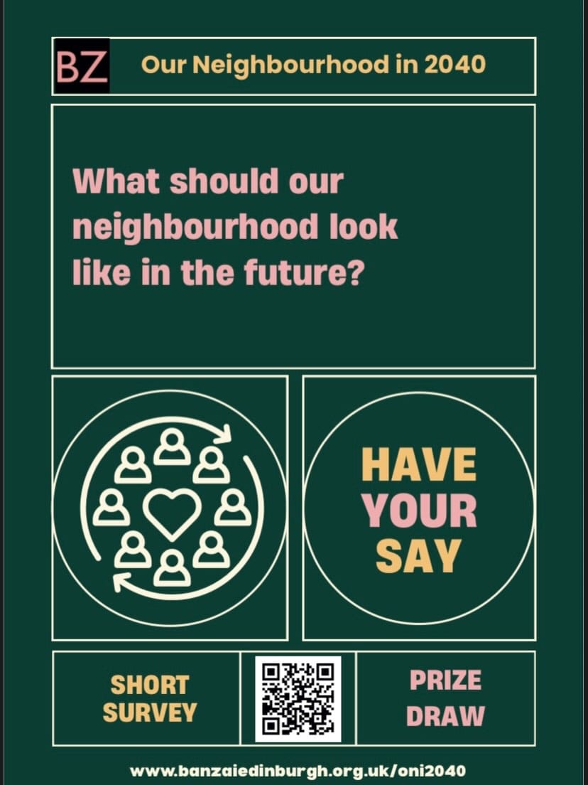 📌 “Saturday 31 Jan - Our Neighbourhood in 2040. Calling all those with links to South Central Edinburgh! What would you like the area to look like by 2040? Fill out our short survey or come along and join us on 31st Jan for free lunch, music and discussion.” - Thanks to Natalie Arnold from BANZAI for sharing this.