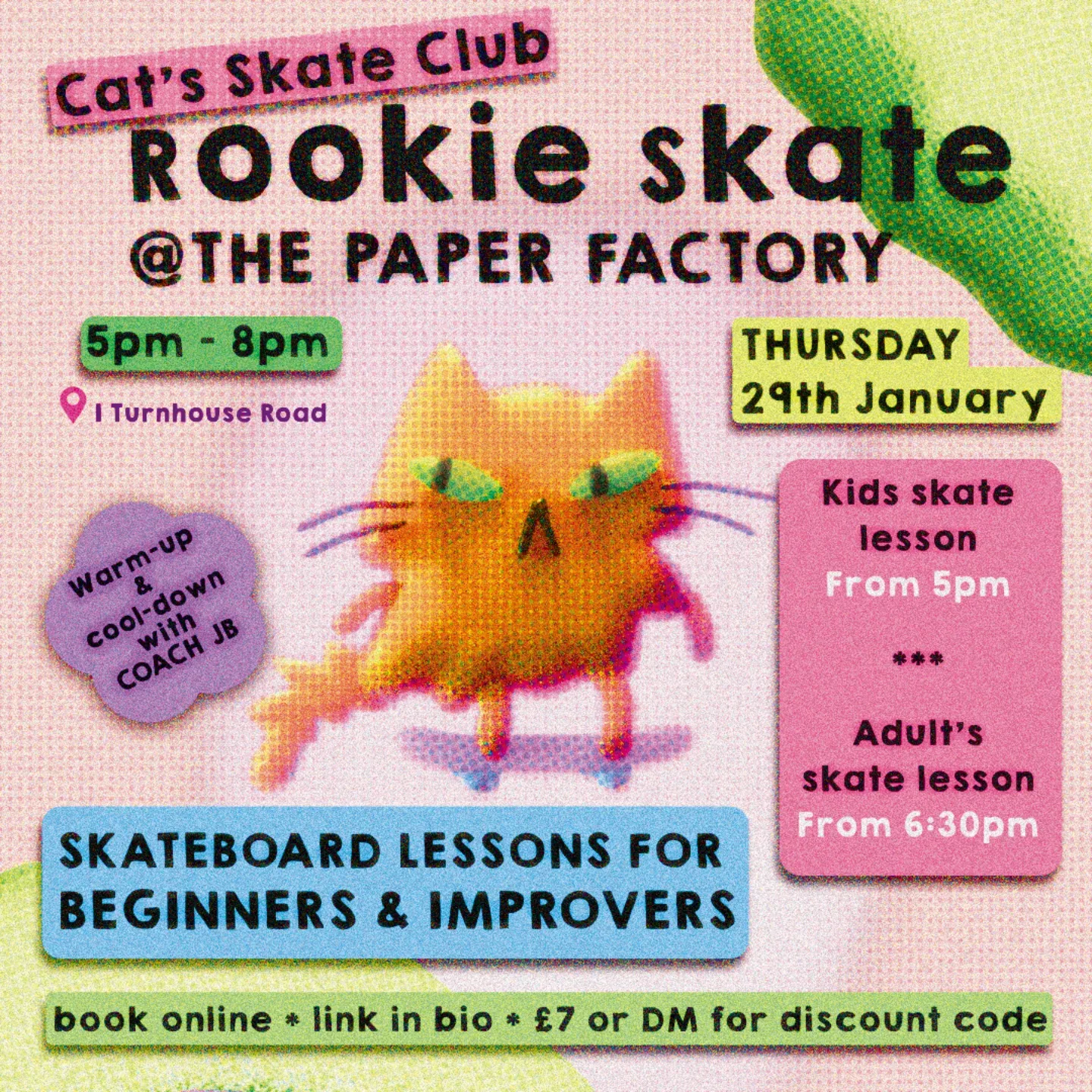 📌 “Thursday 29 January - ROOKIE SKATE! Skateboard lessons for adults & kids, at the Paper Factory, 1 Turnhouse Road. Lessons are suitable for beginners & improvers, standard donation is £7, but if you or your child would benefit from a free place, please get in contact with us at Cat's Skate Club!” - Thanks to Cat's Skate Club for sharing this.