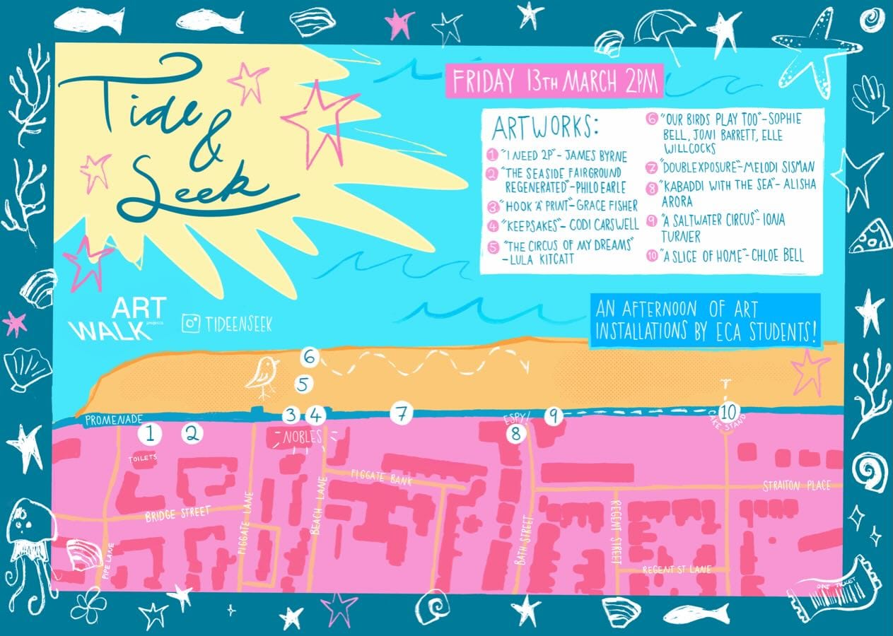 Fri 13 March - Afternoon of Art Installations - film, games, performance and fun! 🌟 Guided tour at 2pm, or grab a friend and just follow the map! In collaboration with ArtWalk Projects and ECA students.