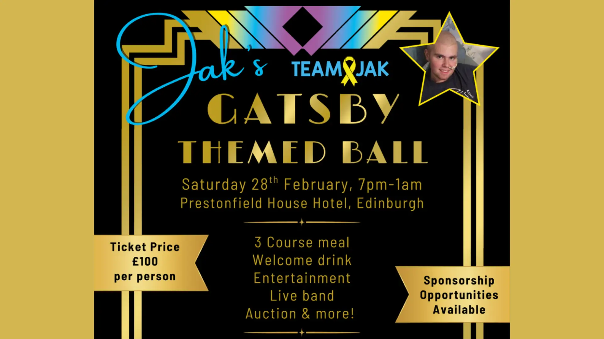 📌 “28th February at Prestonfield House - Jak’s 2026 Ball is a glamorous Gatsby theme, promising a dazzling night. Guests will enjoy a three-course meal, welcome drinks, live music, entertainment, auction and prize draw. This event raises vital funds to support children and young people with cancer, and their families.” - Thanks to Jak's Den for sharing this. - More details in this Instagram post.