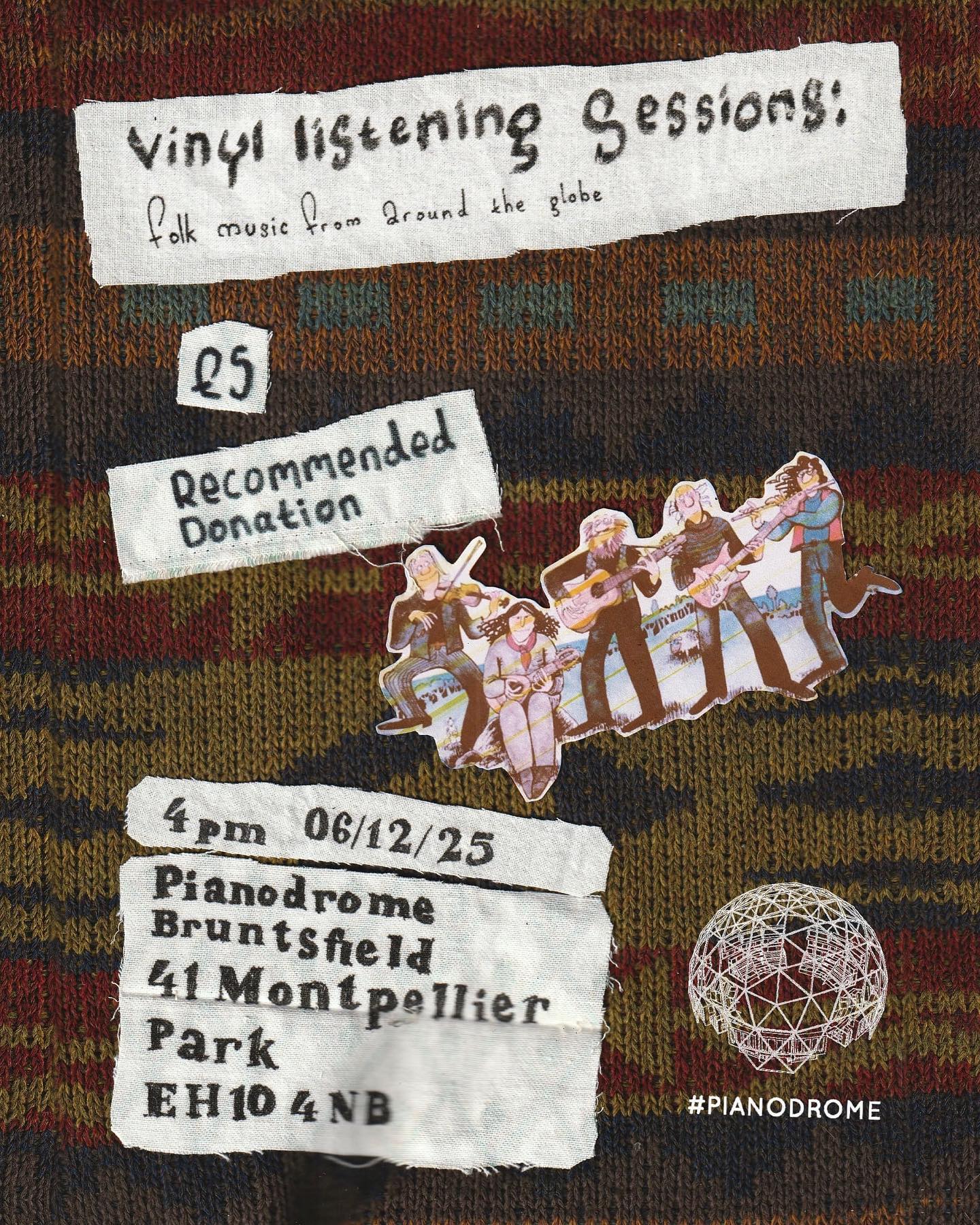 📌 “Saturday 6th December 4pm - Mark Quinn from Greenhouse Records will be hosting a vinyl listening session themed on folk music from around the world in Bruntsfield's new Pianodrome.” - Thanks to the organisers for sharing this.