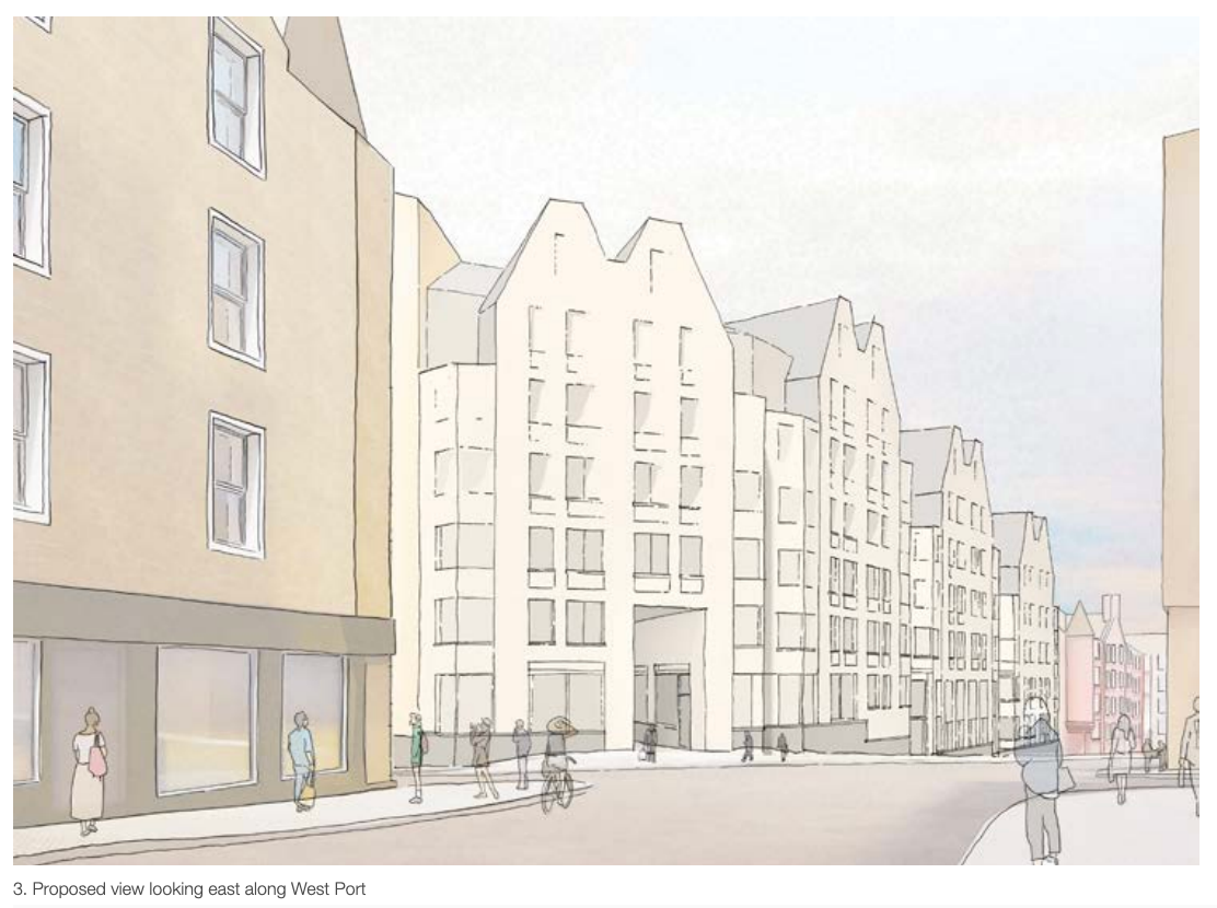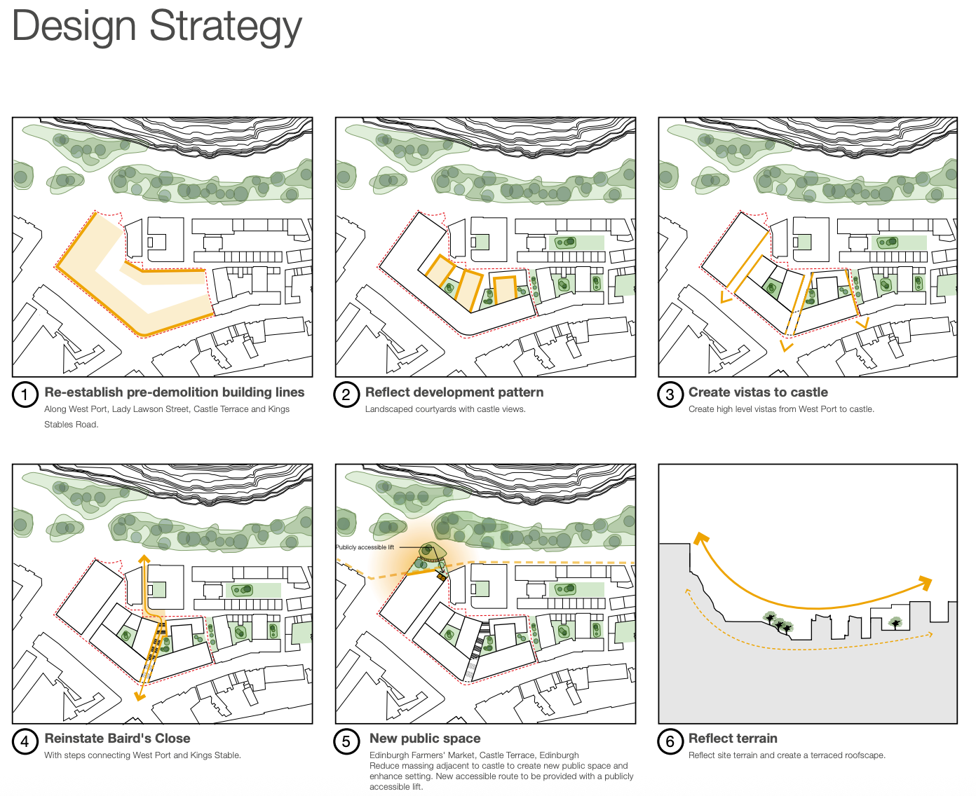 - ⮑ Baird's Close would be reinstated, with steps linking West Port with King's Stables Road, along with a new publicly accessible lift.