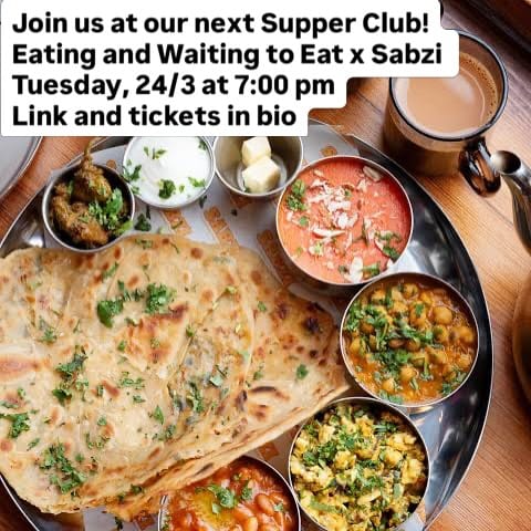 Tue 24 March - Join the hosts of the Edinburgh food podcast Eating and Waiting to Eat at their next Supper Club event: a family style dinner at Sabzi. Co-hosted with Sabzi's owners, dinner will be sharing platters of many a Sabzi favorite (Chip Chaat anyone?).