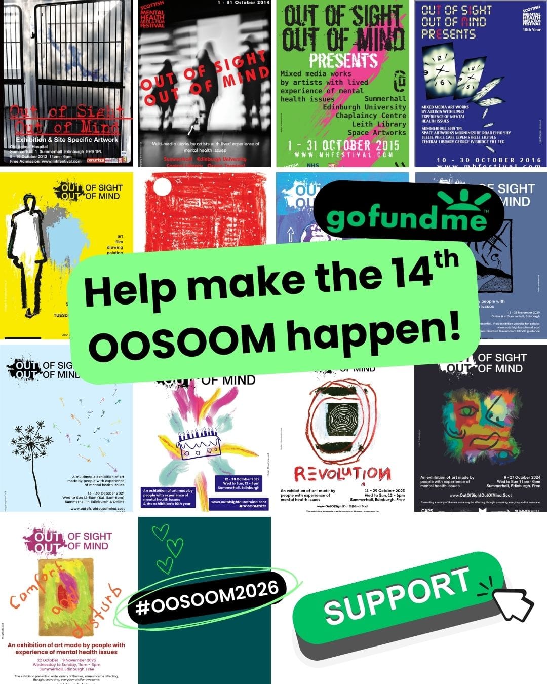 🎨 After 13 years the annual Out of Sight Out of Mind art exhibition had its funding cut back in August [Minute edition 719]. Now organisers, CAPS Independent Advocacy, have launched a £10,000 fundraising bid to get their Summerhall exhibition back on the calendar for October. The show aims to help hundreds of people with experience of mental health issues to share their voices through art. - More details from CAPS here.