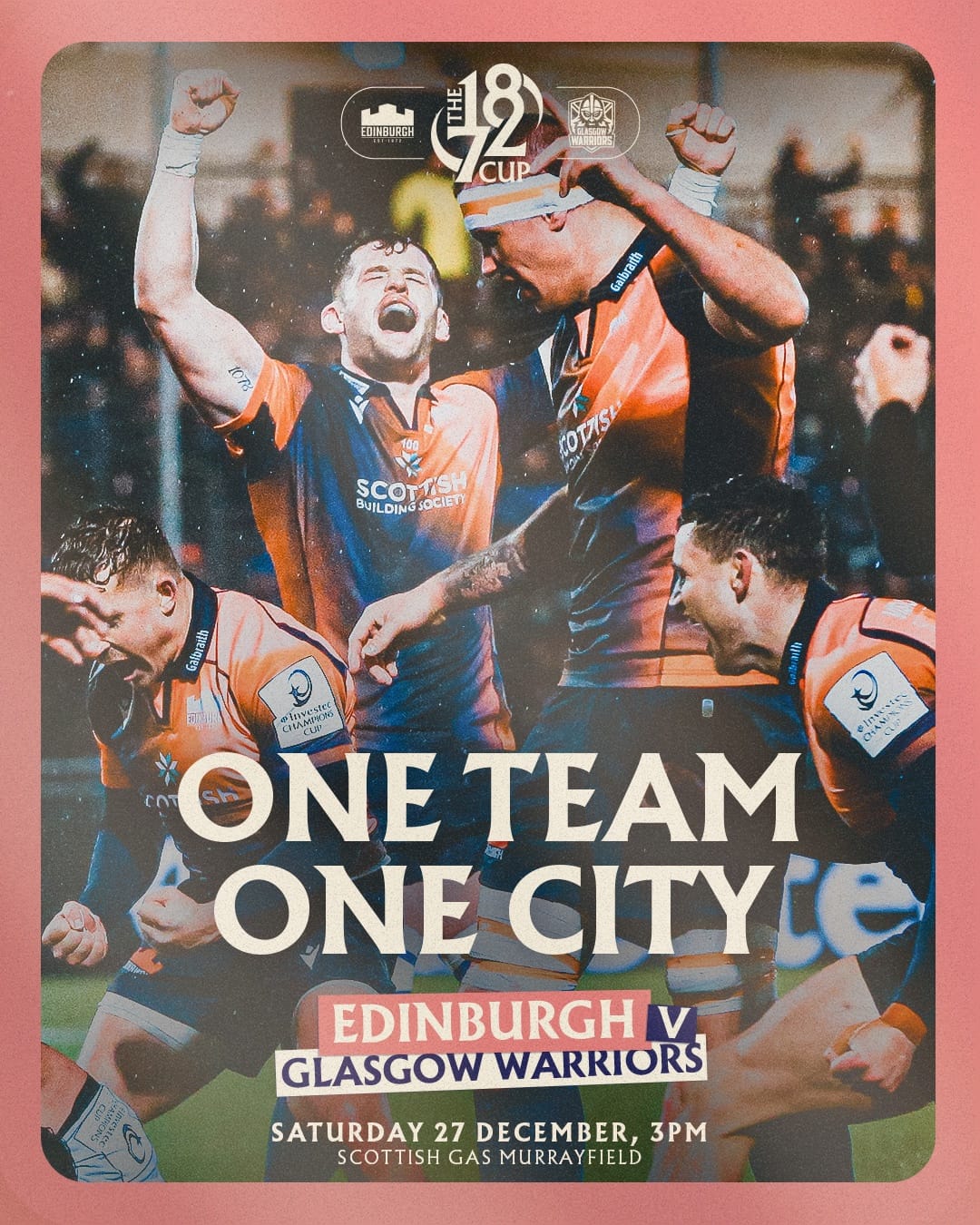 📌 “On Saturday 27 December, Edinburgh Rugby are in action at Scottish Gas Murrayfield when they take on Glasgow Warriors in Rugby's Oldest Derby - the 1872 Cup! It's the perfect activity for the in-between days between Christmas and Hogmanay.” - Thanks to Edinburgh Rugby for sharing this.