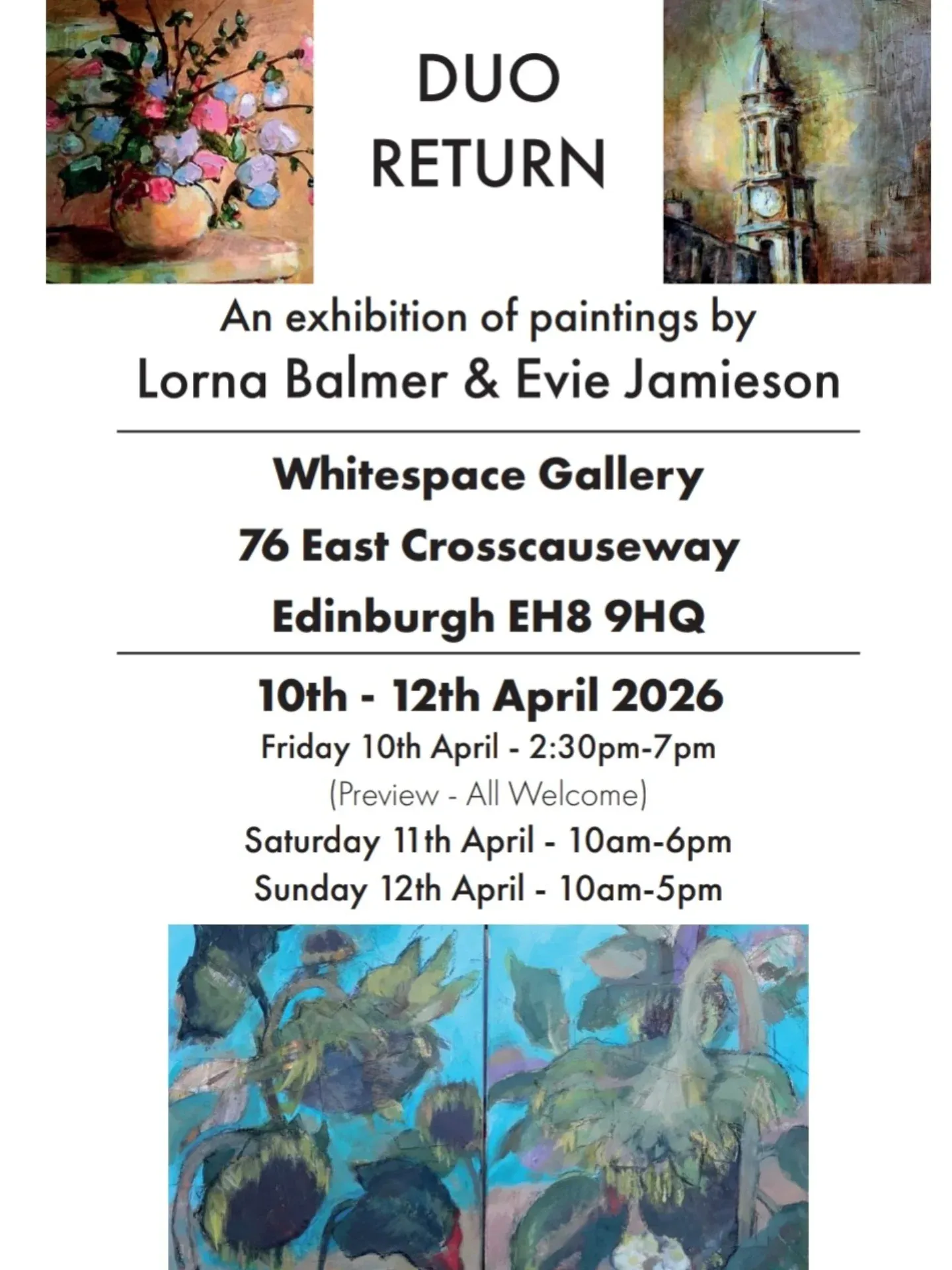 Fri 10 April - 'Small exhibition of contemporary paintings by local artists, Evie Jamieson and Lorna Balmer.'