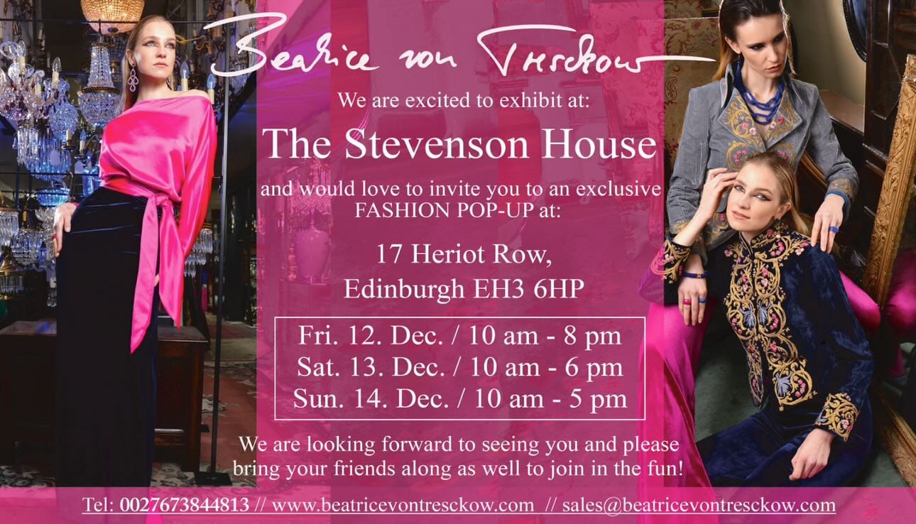 📌 “12/13/14 December - A wonderful opportunity to get your festive wardrobe sorted and meet renowned designer Beatrice von Tresckow at the iconic Stevenson House. Entrance donation to benefit The Teenage Cancer Trust.” - Thanks to Felicitas Macfie of The Stevenson House for sharing this.