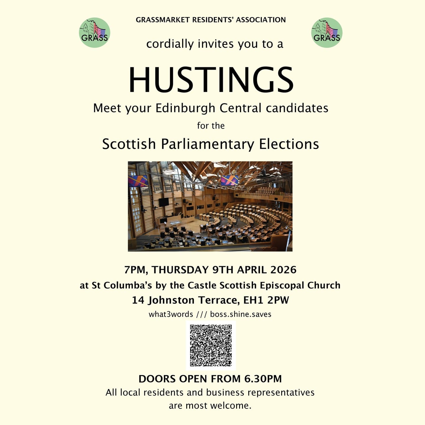 7pm to 10pm | St Columba's by the Castle Scottish Episcopal Church, EH1 2PW | FREE - More details here, shared by Iain Black, Grassmarket Residents’ Association.