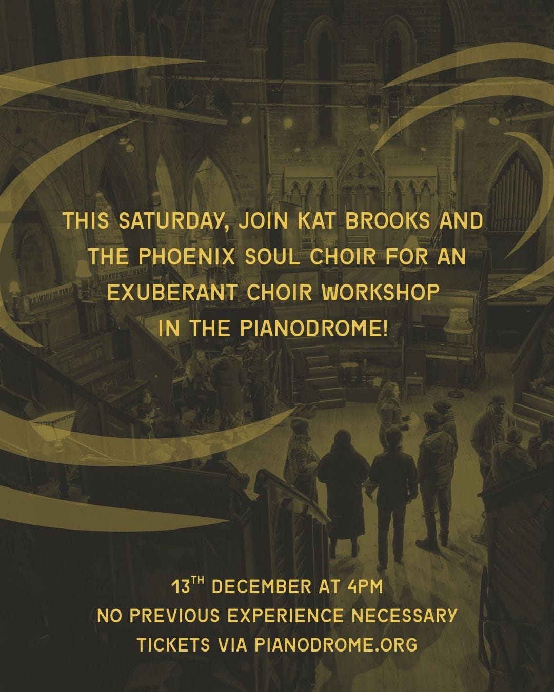 📌 “Join Kat Brooks and the Phoenix Choir for a joyful and exuberant soul singing workshop in the glorious Pianodrome! No experience needed - we love learning songs and harmonies by ear, and we'll explore what happens to how we experience music when you play with space and where sounds are coming from.” - Thanks to The Phoenix Choir for sharing this.