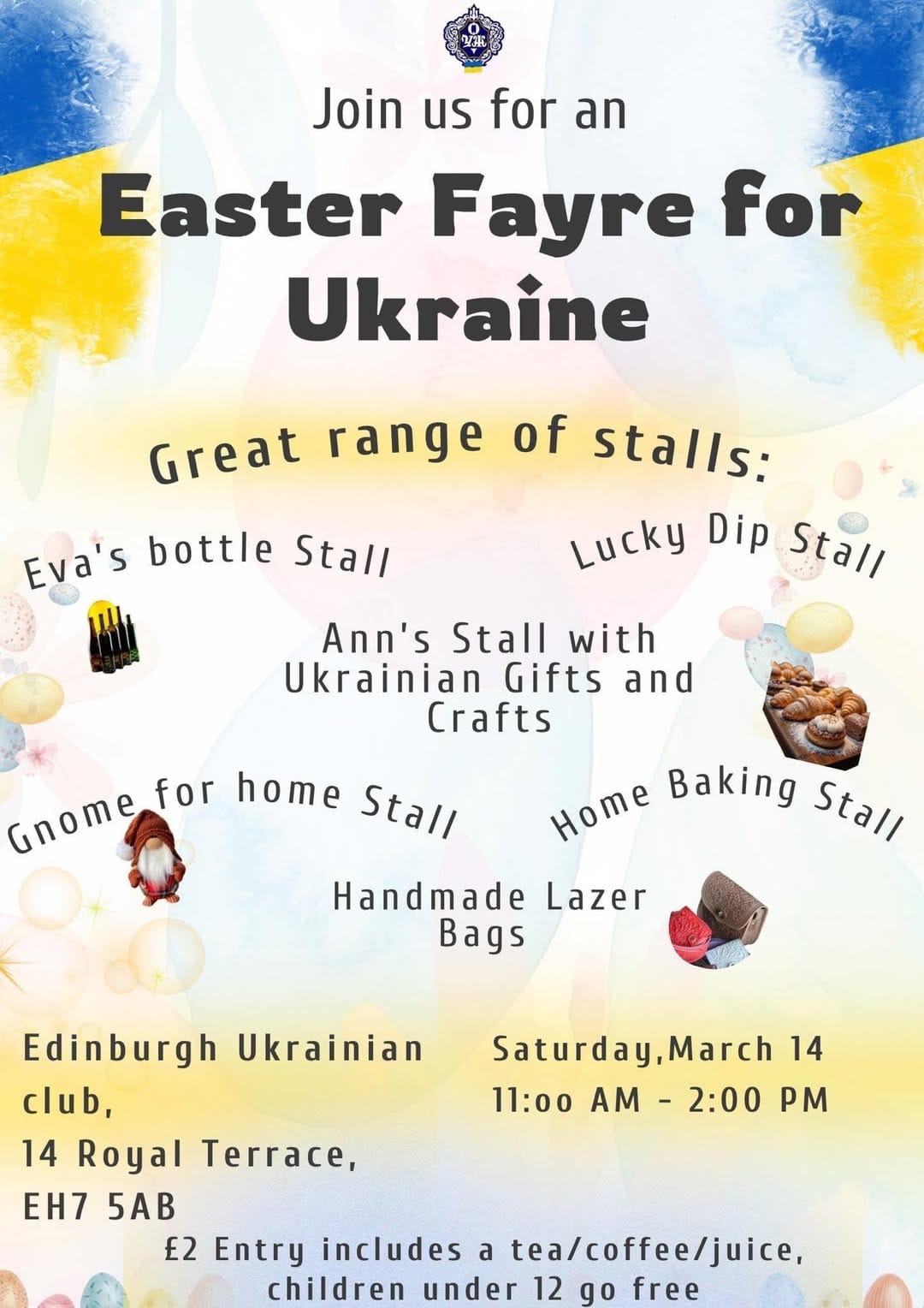11am to 2pm | Ukrainian Community Centre (AUGB Edinburgh), EH7 5AB | £2 w. T&C. U12 Free - More details here, shared by Nadia.