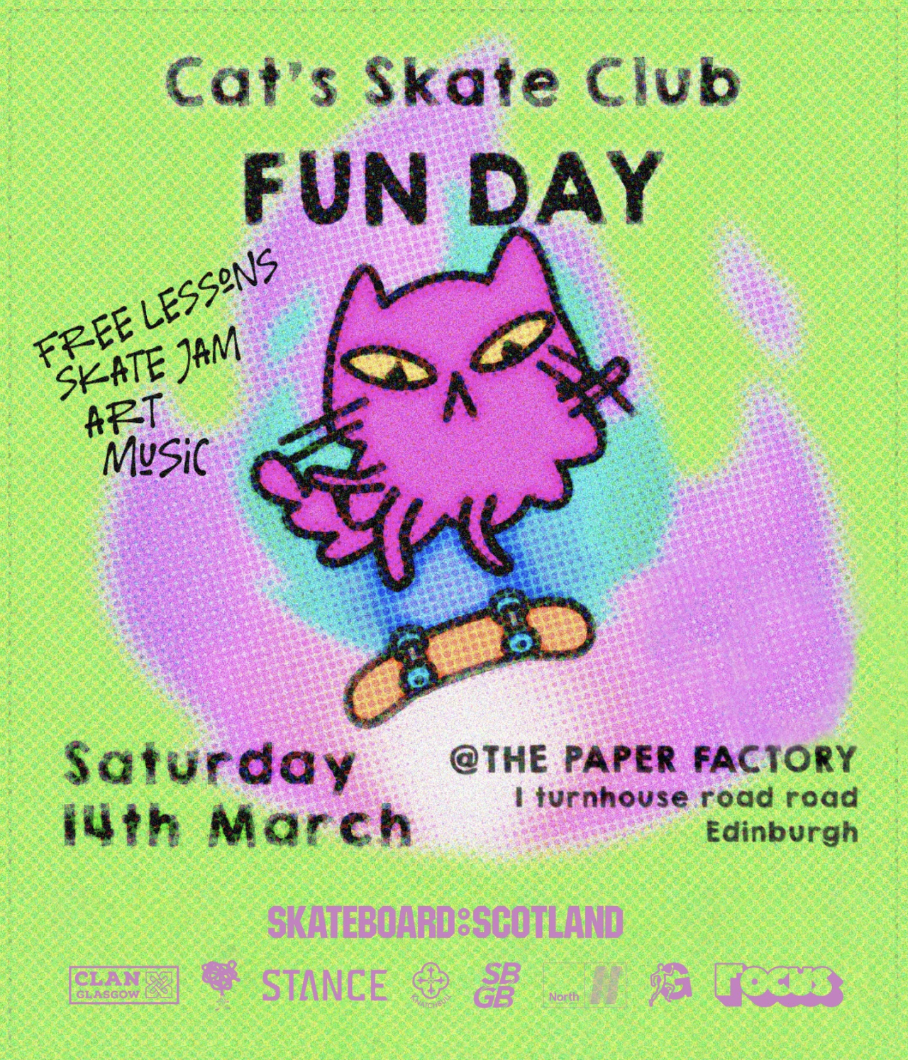 Sat 14 March - This Saturday, from 12pm at the paper factory! join us for free skateboard lessons, (book your free ticket ahead via our booking site) and stick around for music, art, open skate session and skate jams throughout the day!