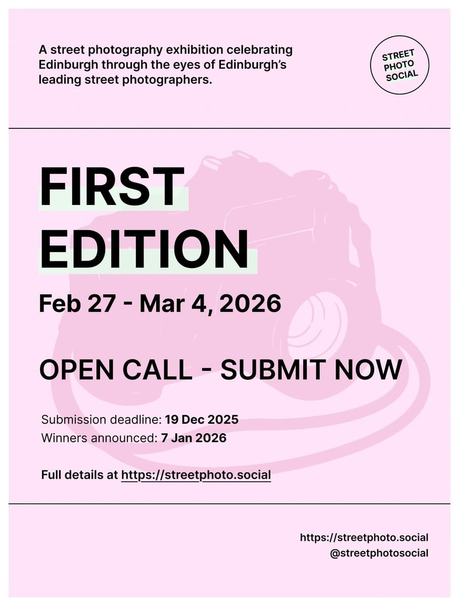 📌 “Street Photo Social is holding its first photography exhibition in February. We have an open call for submissions until 19th December. We're looking for great street photographers to exhibit their work. It's free to enter! Full details on the website.” - Thanks to Olly for sharing this.