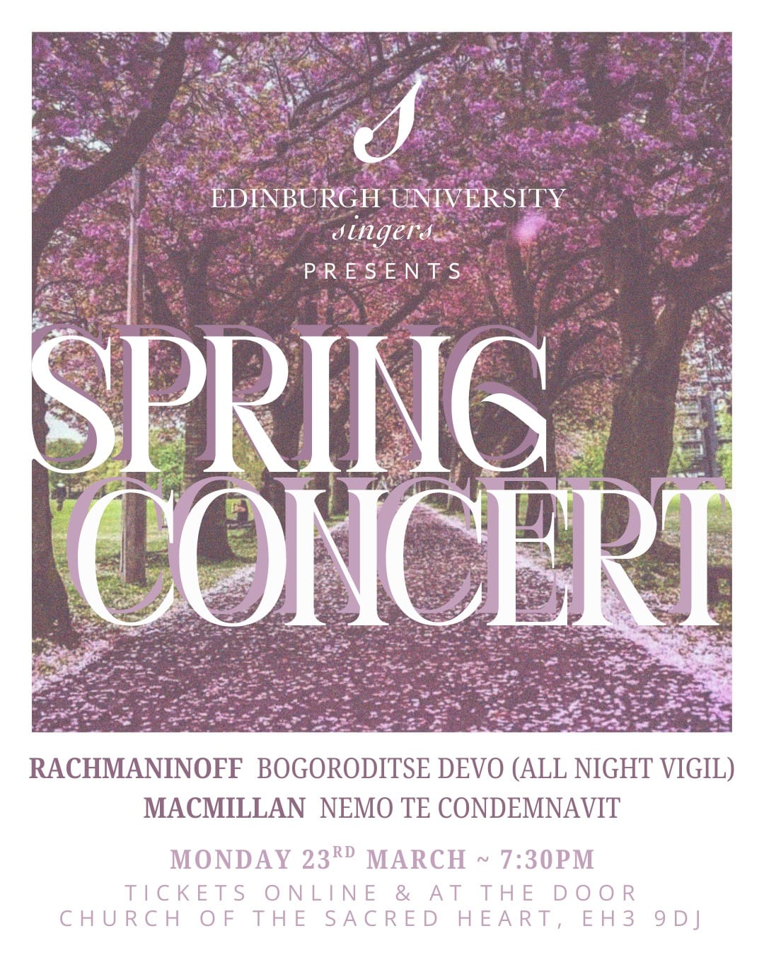 Fri 20 March - 'Join UofE Singers for a charity concert featuring various works including arrangements by Peter Backhouse and Rachmaninoff. We are supporting the Astro Brain Tumour Fund, bettering brain cancer patient outcomes. Food, drink and a raffle!'