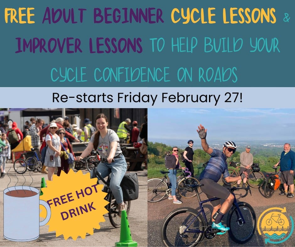 Fri 27 February - Our free cycle lessons for adults begin again this Friday. We can provide bike and helmet: if you've cycled as a child but need to develop confidence cycling on roads, or if you've never cycled but want to learn - come and give cycling a try!