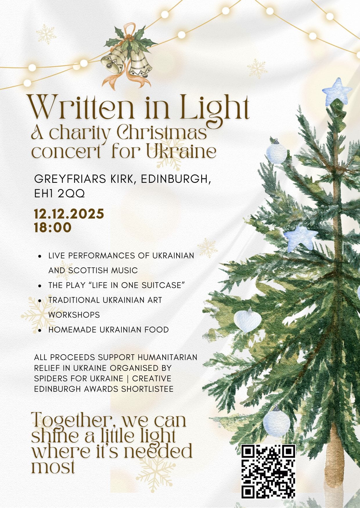 📌 “Friday 12 December, 6pm-9pm - Greyfriars Kirk: A Charity Christmas Concert for Ukraine. Organised by Spiders for Ukraine. Ukrainian Carols, and Scottish music, a play, stalls, food and cheer. All proceeds for humanitarian aid in Ukraine.” - Thanks to the Spiders for Ukraine volunteers for sharing this.