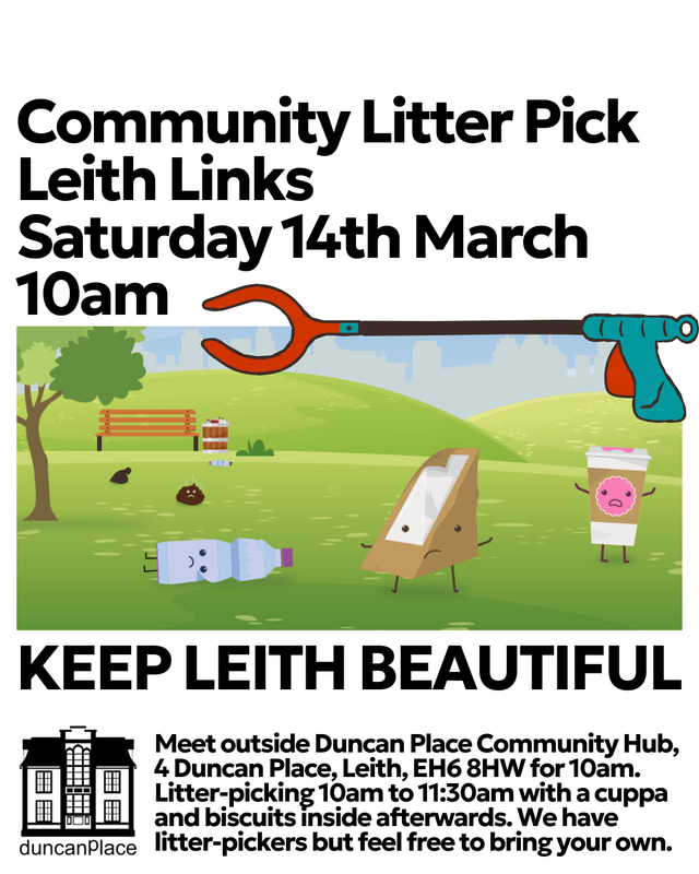 Sat 14 March - During Spring Clean Scotland, we're organising another community litter pick of the Leith Links area. 10am til 11:30am for litter pick. Free cuppa & biscuits after. Meet in our car park for 10. We have litter pickers but feel free to bring your own.