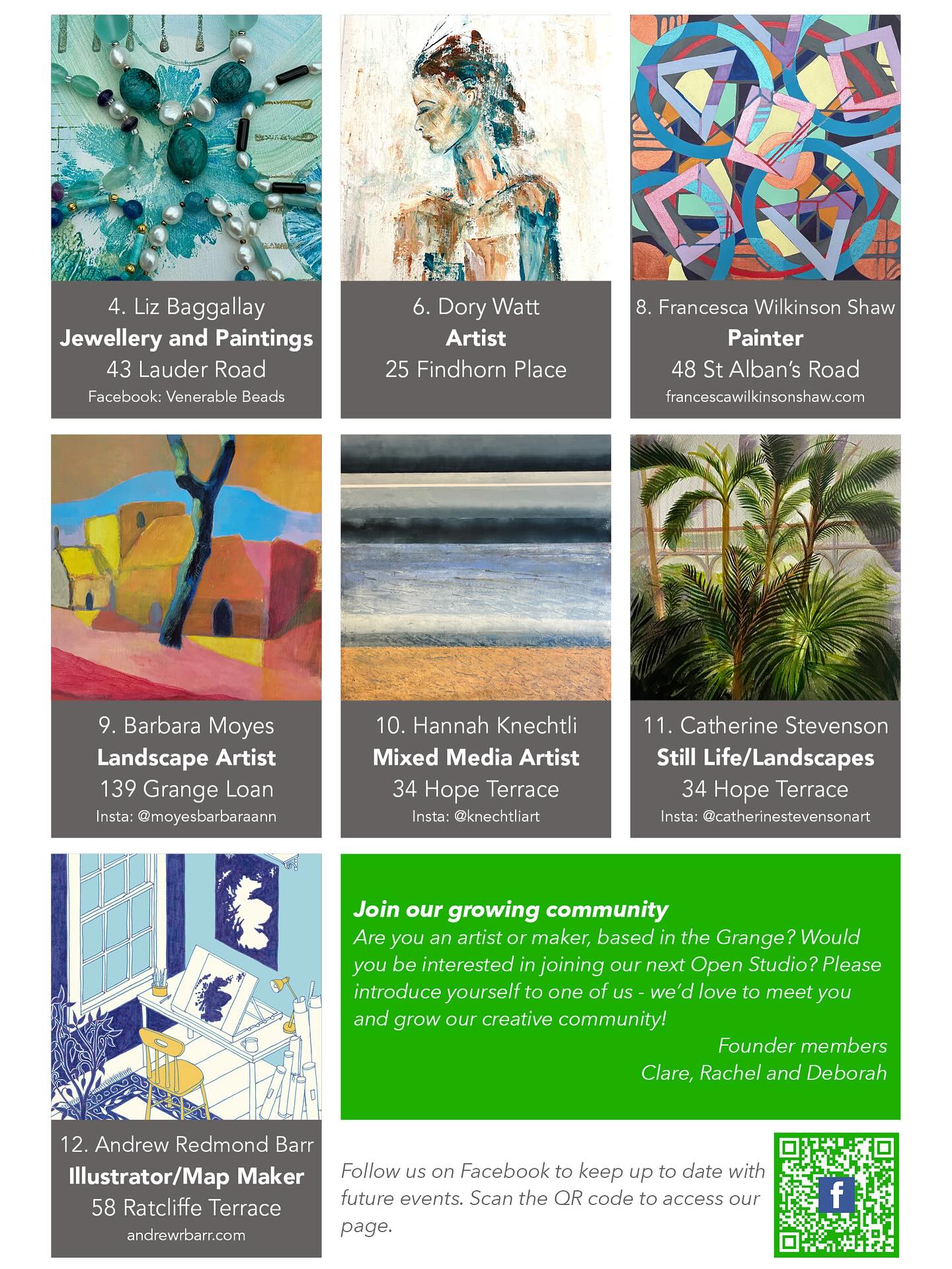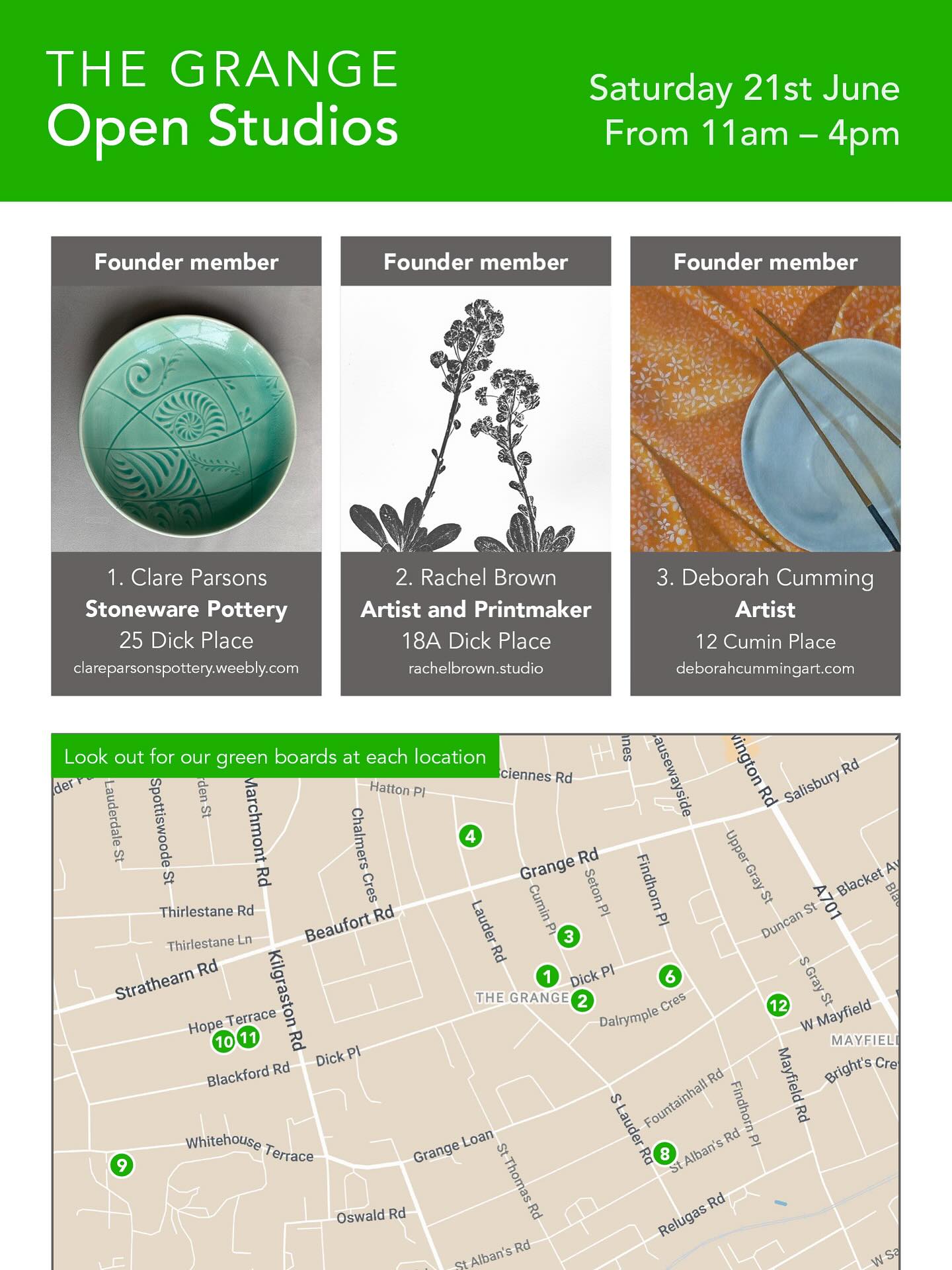 📌 "Grange Open Studios is back on Saturday 21st June, 11–4 with 10 local artists opening their doors around the neighbourhood! 🎨 Discover a mix of painting, printmaking, ceramics, jewellery and more — all within walking distance in the Grange. Pick up a map, enjoy a wander, and meet the makers behind the work! 🌿" - Thanks to Rachel Brown, ⅓ founder of Grange Open Studios for sharing this.