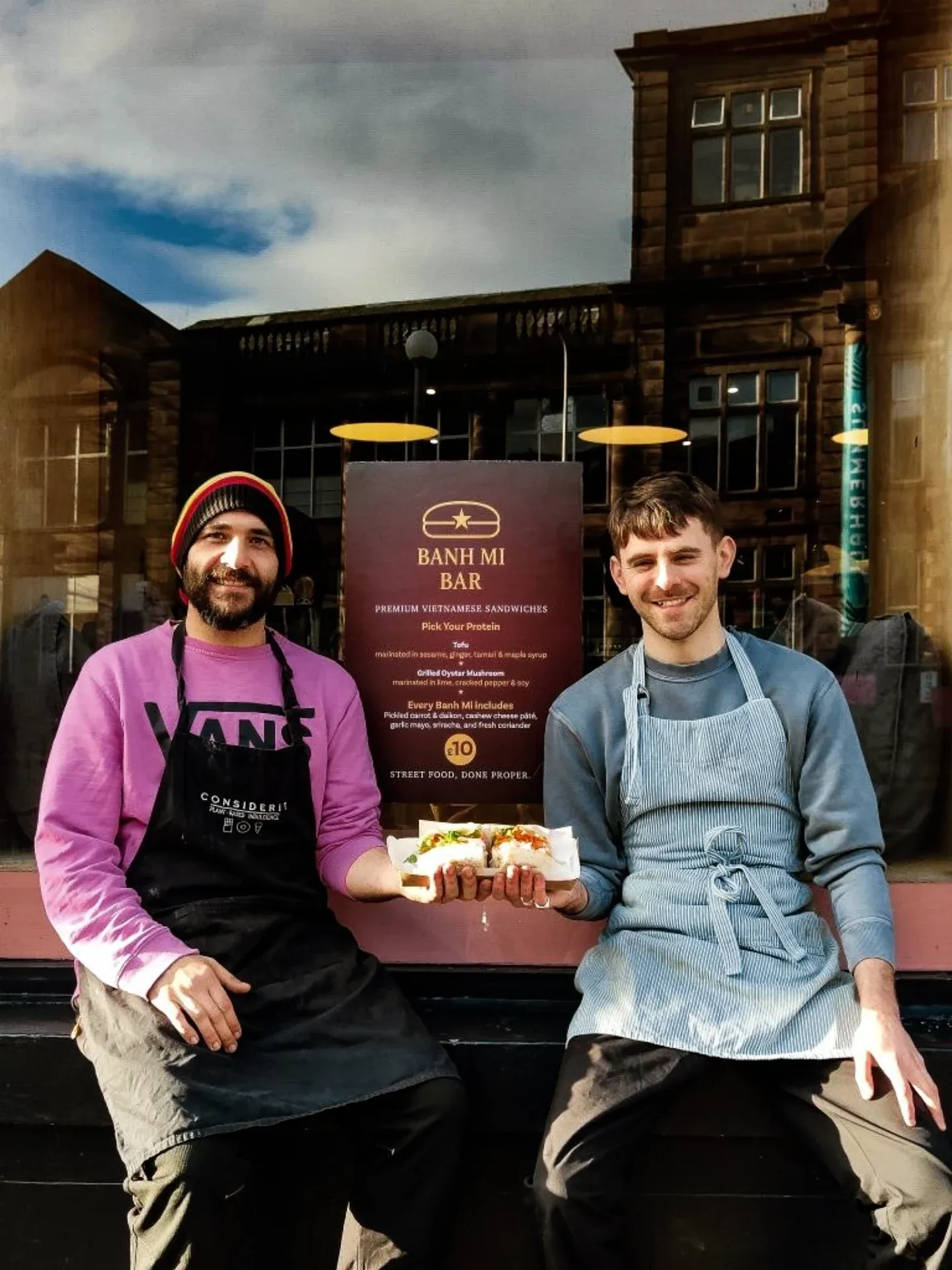 📌 "We are running a pop up at Considerit doughnuts where we serve vegan banh mi sandwiches. Burns night special is vegan haggis with irn bru sriracha, garlic mayo, pickles and coriander" - Thanks to Liam and Nico for sharing this.
