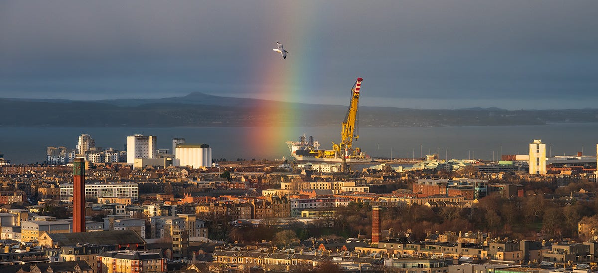 🏗️ If you've been anywhere in town with a skyline view this year, chances are you've seen the huge Les Alizés crane at Leith docks. It's assisting with wind turbine parts. Towering 270m high, the crane is three times higher than St Mary’s Cathedral (Edinburgh’s tallest building). - Photographer Tom Duffin has more facts and snaps here.
