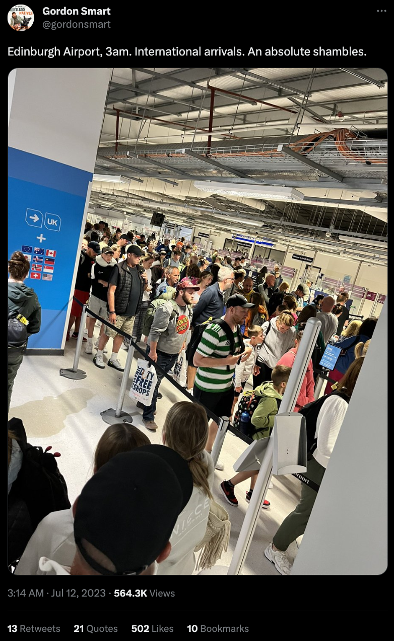 🛬 Edinburgh Airport has struggled to cope this week with delays at arrivals seeing long queues as late as 3am and in some cases leaving passengers waiting on the tarmac.